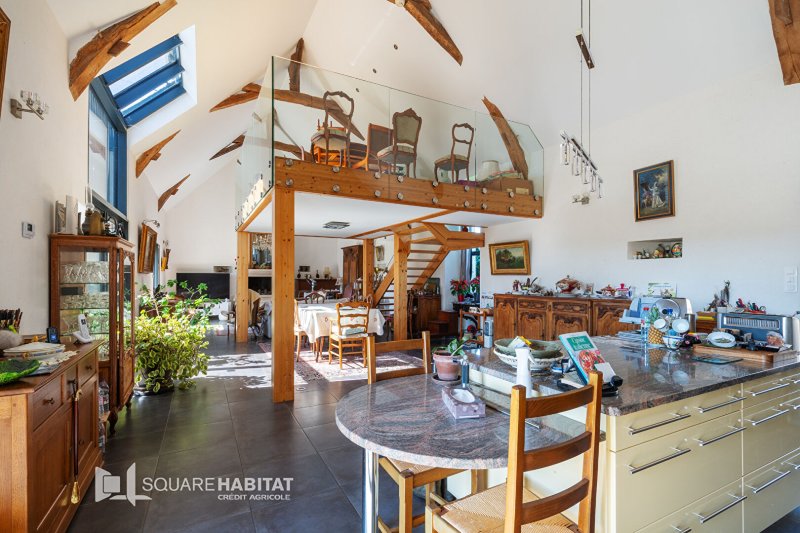Uniquement chez SQUARE HABITAT ! Magnifique longère restaurée de 250 m² à Vallons-de-l'Erdre, sur plus de 2 hectares de terre ( Option d'achat de terres supplémentaires allant jusqu'à 23 ha) alliant charme, confort et autonomie énergétique. Nichée dans un cadre enchanteur, cette longère de 250 m² avec combles aménageables afin d'augmenter encore la surface, magnifiquement restaurée, offre un mélange parfait entre le charme de l'ancien et le confort moderne. Ses matériaux nobles, tels que les pierres apparentes et les poutres en bois massif, lui confèrent une atmosphère chaleureuse et authentique. Le vaste salon-séjour, baigné de lumière grâce à ses grandes ouvertures sur le jardin, s'ouvre sur une belle cheminée en pierre, créant un espace de vie convivial et accueillant. La cuisine aménagée et équipée allie élégance et fonctionnalité, idéale pour les repas en famille ou entre amis. La maison dispose de plusieurs chambres spacieuses, ainsi que d'un bureau et d'une buanderie, offrant tout le confort nécessaire au quotidien.