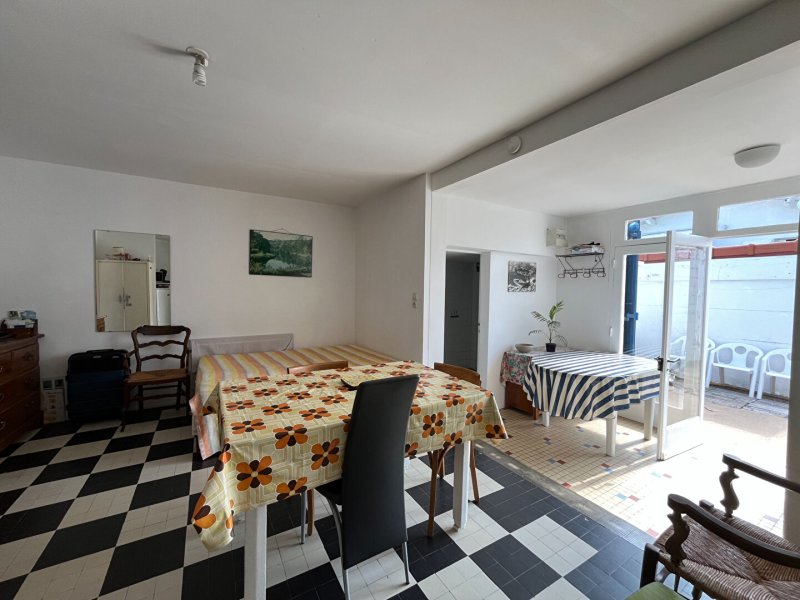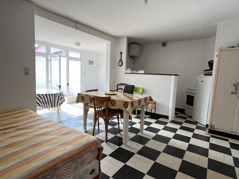 MAISON A VENDRE au coeur de THARON PLAGE, à 50 m des commerces, 200 m de la plage. Plain pied de 40 m² environ, composée d'une pièce de vie avec coin cuisine de 28 m², d'une chambre avec dressing, une salle d'eau avec wc. Une petite cour. Idéale pour les vacances.