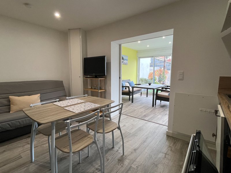 À seulement 50 mètres des commerces et 300 mètres de la plage, découvrez cette maison entièrement rénovée en 2022 (sous garanties décennales) au sein d'une petite copropriété de 4 lots sans charges, au calme.