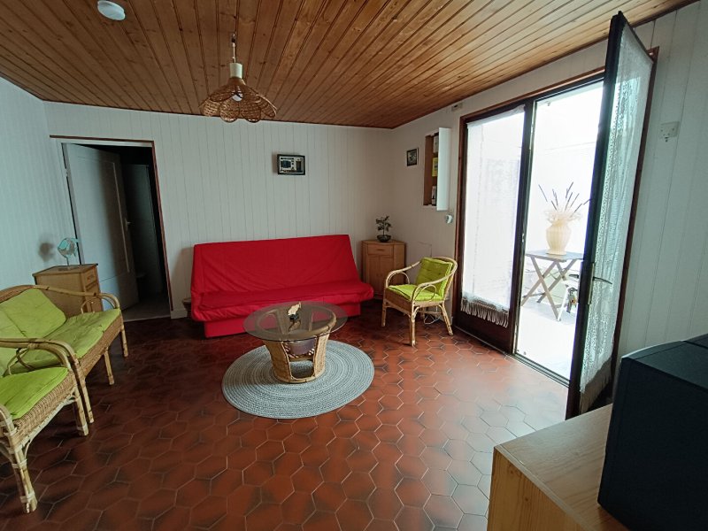 URGENT AFFAIRE A SAISIR Centre de Tharon, charmant pied à terre proche commerces et plage à pied . Copropriété de 9 lots , avec un accès privée sur la parcelle. Vous entrez sur le jardin privatif, puis par la véranda. La maisonnette se compose d'un séjour, d'une cuisine aménagée, une chambre, un coin sde et un wc séparé , à l'extérieur un abris de jardin.