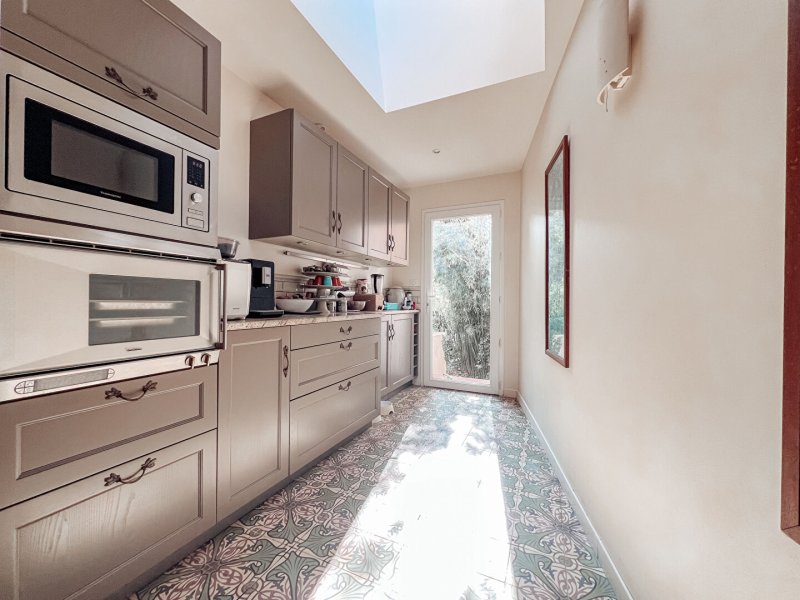 Elle offre au rez-de-chaussée : une entrée avec un grand rangement, WC séparé avec lave main, une SUITE PARENTALE avec salle de bain (baignoire et douche), un dressing, une belle pièce de vie traversante EST-OUEST très lumineuse d'environ 50m² comprenant le séjour et la salle à manger, ainsi qu'une cuisine séparée de 17m², le tout donnant sur le jardin et la piscine. Une arrière cuisine fonctionnelle vient compléter ce niveau.