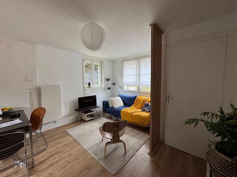 Comprenant : entrée, séjour salon avec cuisine ouverte, deux chambres, salle d'eau, WC séparés.