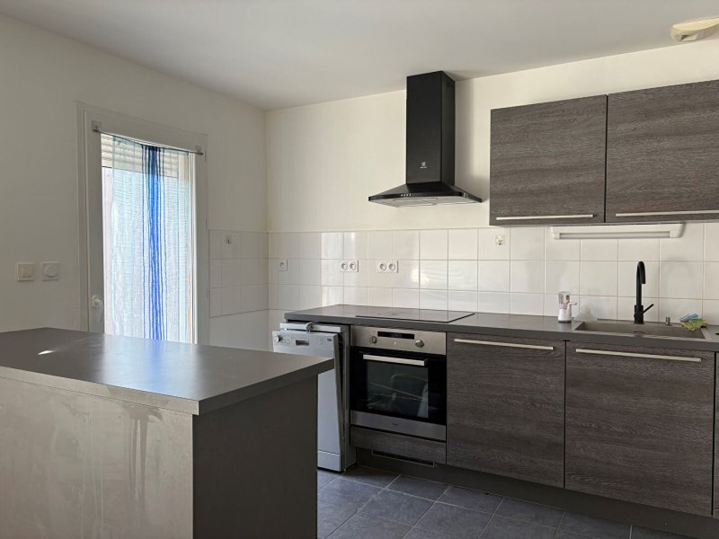 Salon séjour ouvert sur une cuisine aménagée et équipée, buanderie et garage isolé et Wc