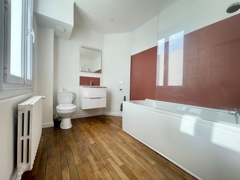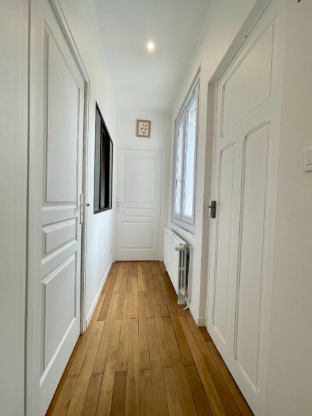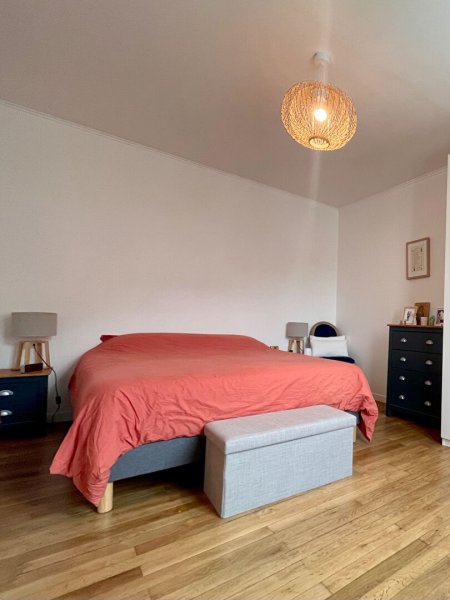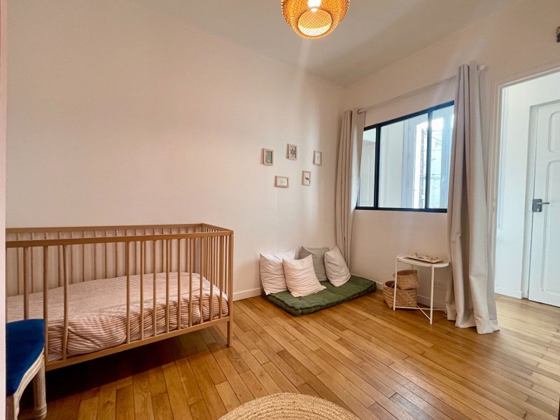 À l'étage, un dégagement dessert deux belles chambres de 10,62 m² et 15,35 m², toutes deux sur parquet massif, ainsi qu'une salle de bain avec WC.