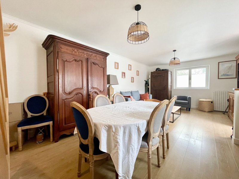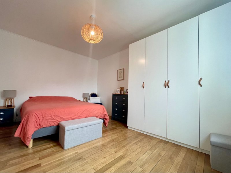 Dès l'entrée, vous serez séduit par son salon-séjour lumineux de plus de 27 m², exposé sud-est, offrant un espace convivial et chaleureux. La cuisine attenante, entièrement aménagée et équipée, complète ce rez-de-chaussée fonctionnel.