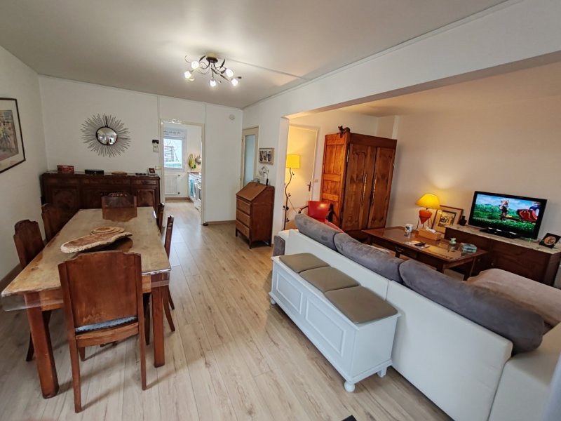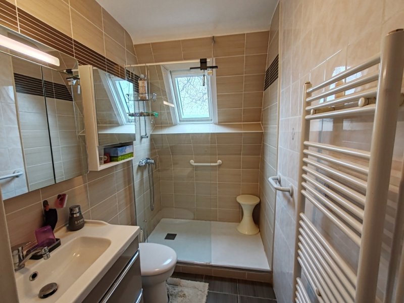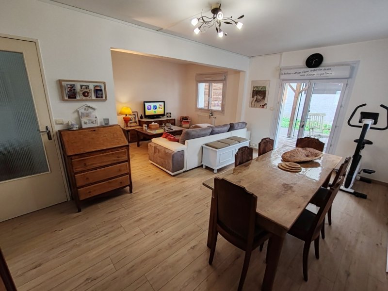 Maison de type 3 d'environ 90m² comprenant une entrée, un salon- séjour aspectant une terrasse, une cuisine indépendante, W-C et douche, deux chambres, possibilité d'en créer une troisième. Cette Maison possède de nombreux équipements comme une pompe à chaleur, une isolation par l'extérieur, et également un garage de 18 m² avec mezzanine.