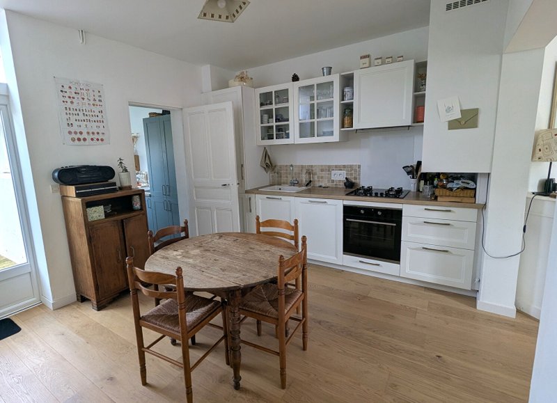 Vous serez séduits par cette maison des années 30 située au calme et proche des commerces. Elle comprend au rez-de-chaussée une entrée, un salon-séjour avec belle hauteur sous plafonds ouvrant sur une cuisine aménagée équipée très lumineuse , une arrière cuisine, un WC. A l'étage un palier dessert deux chambres, un coin bureau et une salle de bains avec WC. Dépendances. le tout sur un terrain clos et arboré de 182 m2.