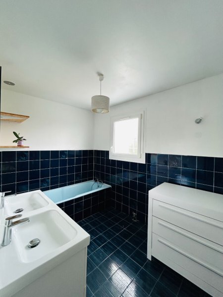 À l'étage, l'espace nuit se compose de trois chambres, dont une avec sa salle d'eau, un bureau idéal, ainsi qu'une salle de bain.