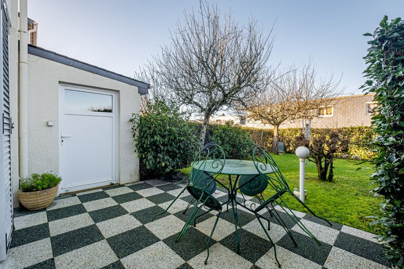 Au rez-de-chaussée : entrée, cuisine indépendante, salon-séjour lumineux avec accès direct au jardin, buanderie et garage.