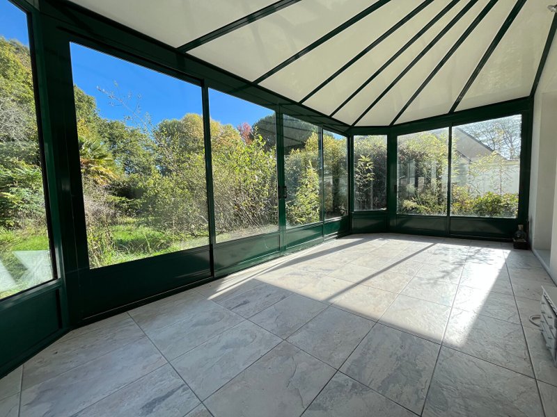 Elle comprend au rez de chaussée : une pièce de vie traversante avec cheminée insert, une cuisine indépendante aménagée et équipée ouverte sur une grande véranda avec vue dégagée sur le jardin, une chambre de plain-pied avec sa salle d'eau, une arrière cuisine/buanderie, WC, et une deuxième salle d'eau.