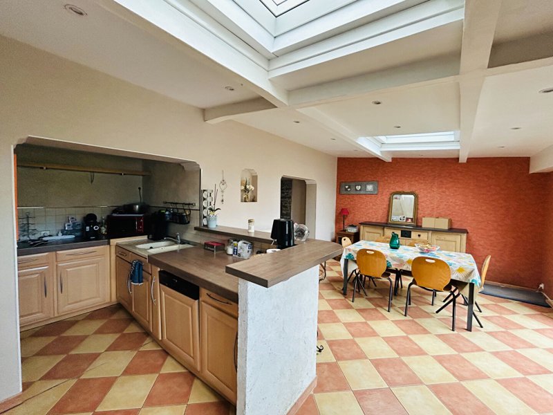 Composée d'une entrée, cuisine séjour sur jardin, à l'étage grand salon et une chambres, sous combles 3 chambres.