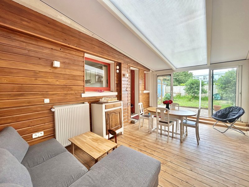 Le rez de chaussée se compose d'une entrée avec placards, d'un salon, cuisine aménagée et équipée, d'une salle de bain, et d'un séjour lumineux ouvert sur le jardin.