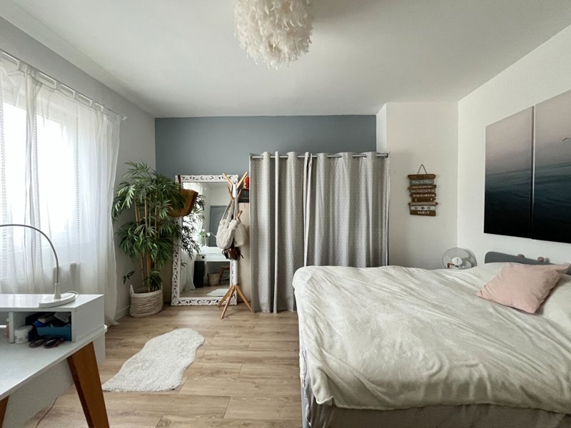 Au dernier niveau, un espace parental cosy avec chambre, bureau ou dressing et salle d'eau.