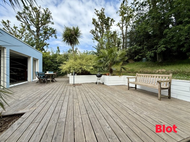Située à Saint-Marc-sur-Mer, à proximité immédiate des plages prisées de la Courance et de Monsieur Hulot, cette maison familiale saura vous séduire par ses volumes et sa luminosité. Implantée sur une parcelle d'environ 580 m², elle offre en rez-de-jardin une superbe pièce de vie de plus de 45 m² baignée de lumière, comprenant une cuisine ouverte, un espace salle à manger et un salon convivial avec poêle à bois, le tout s'ouvrant sur une grande terrasse en bois et un jardin idéal pour profiter des beaux jours. Toujours à ce niveau, vous trouverez trois chambres avec placards, une salle de bains équipée d'une baignoire et d'une douche, ainsi que des WC séparés. Le rez-de-chaussée propose des espaces complémentaires avec une buanderie, une chambre supplémentaire et un grand garage de 33 m². Plusieurs places de stationnement viennent compléter les prestations sur la parcelle. Une maison fonctionnelle et agréable à vivre, dans un environnement recherché proche de la mer. Les informations sur les risques naturels, miniers, ou technologiques, auxquels ce bien est exposé, sont disponibles sur le site www.georisques.gouv.fr CLASSE ENERGIE : C CLASSE CLIMAT : A Au prix de 498 750 € FAI dont 5% d'honoraires soit 23 750€ TTC à la charge de l'acquéreur. Référence : 2340ABO Ce bien vous est présenté par l'agence BLOT IMMOBILIER La Baule, 16 avenue du Marché - 44500 LA BAULE