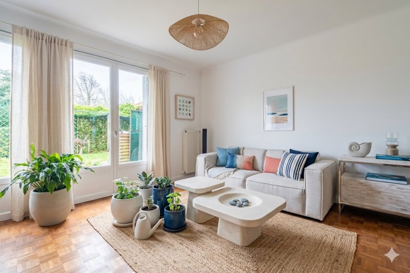 Espaces de vie lumineux : Un salon chaleureux ouvert sur un jardin exposé plein Sud.