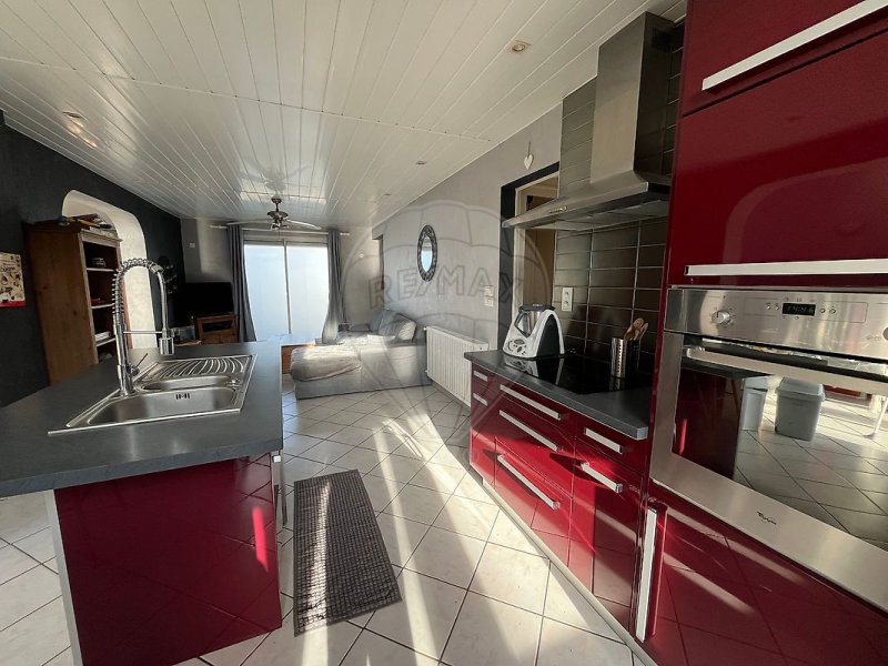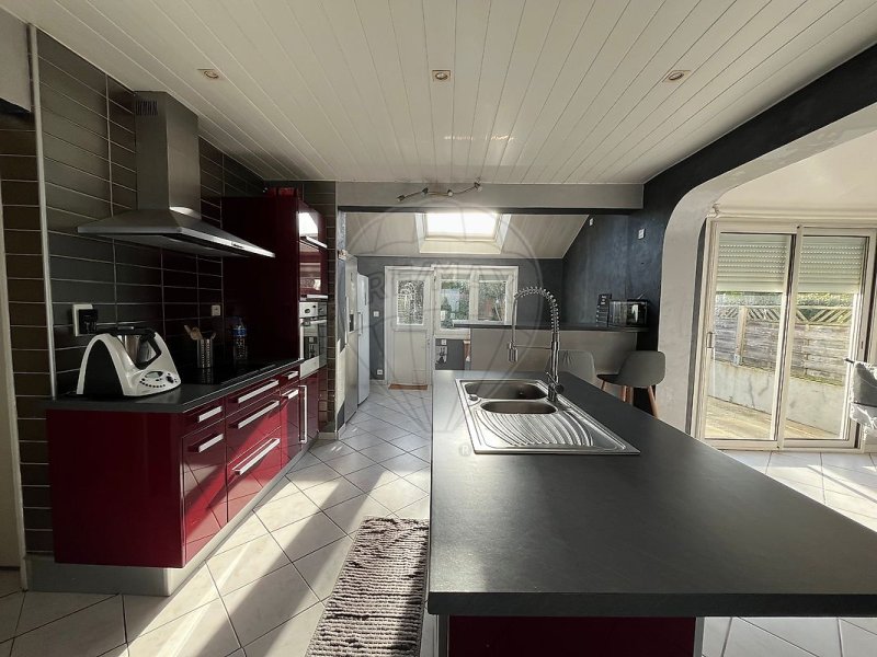 Belle cuisine aménagée et équipée donnant sur le jardin avec salle à manger et son salon ouvert pour de belles réceptions familliales.