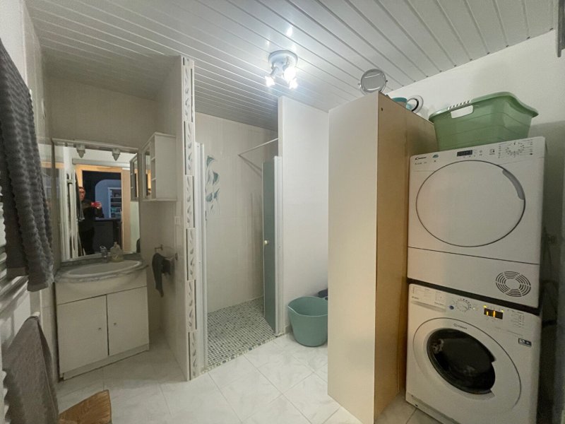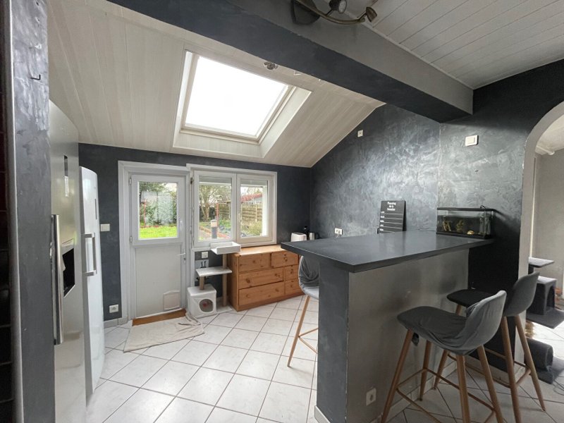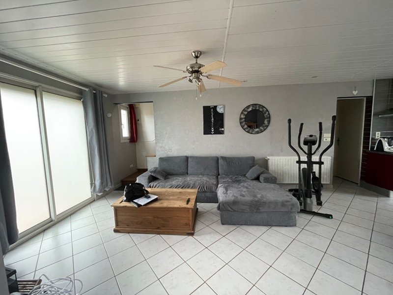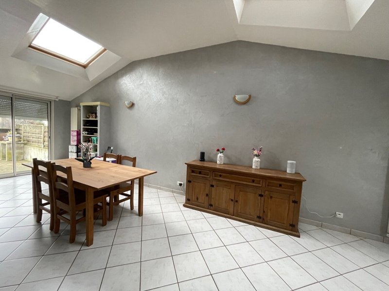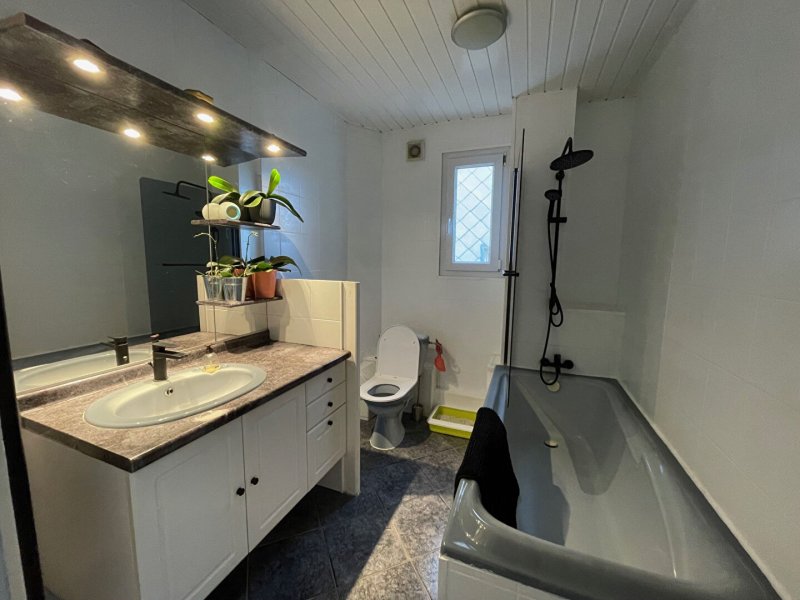 Maison familiale proposant au rdc une pièce de vie traversante d'environ 55 m² avec une cuisine aménagée et équipée donnant sur le jardin, une salle d'eau avec un espace buanderie, wc, garage.