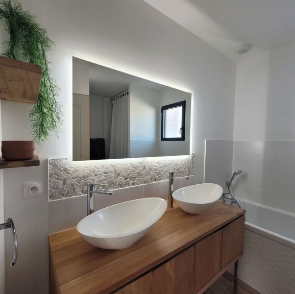 Dès l'entrée, vous serez séduit par une lumineuse pièce de vie avec cuisine ouverte aménagée et équipée, se prolongeant sur une terrasse exposée sud-est. Le coin nuit offre 3 chambres avec placards et une salle de bains avec double vasques, douche et baignoire.
