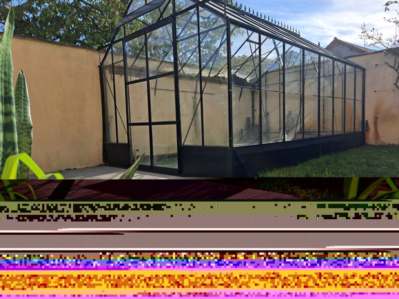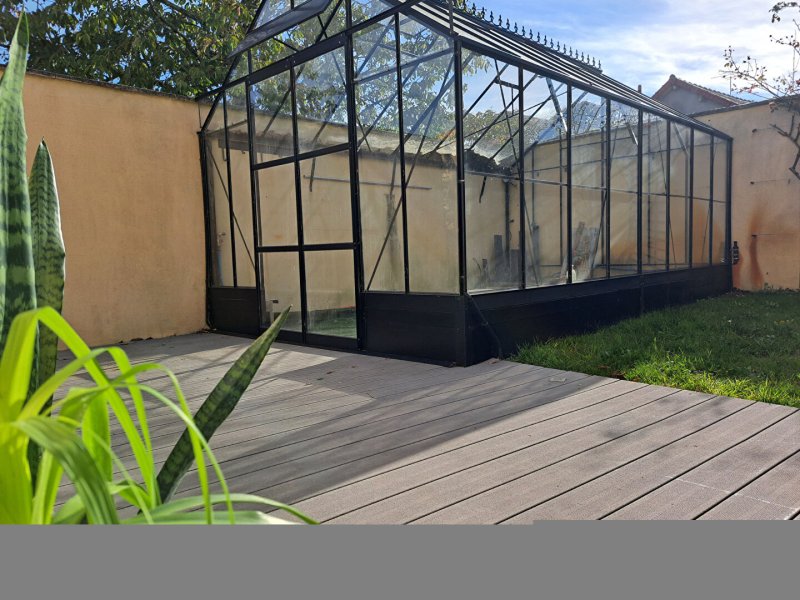 À l'extérieur, la maison s'ouvre sur une grande terrasse baignée de soleil, un abri agrémenté d'une cheminée tandis qu'une serre verrière vient ajouter une touche de charme et d'authenticité.