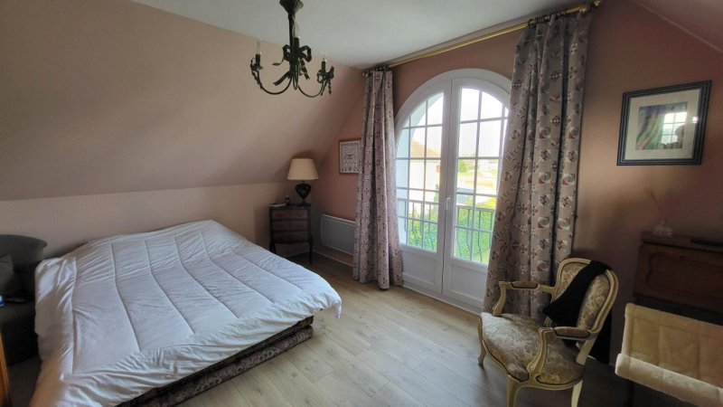 A l'étage, grande mezzanine pour espace salon ou bureau, couloir desservant 3 chambres, salle de bains et wc récents, pièce rangement. Grand sous sol avec garage 2 véhicules, buanderie et cave. Menuiseries double vitrage avec volets, menuiseries intérieures récentes . Belle terrasse exposée sud, jardin clôturé et arboré, prestations qualitatives sur la totalité de la maison