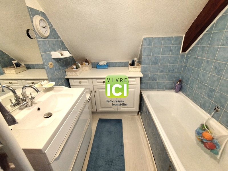 À l'étage, le palier dessert trois chambres confortables, une salle de bains et un second WC indépendant, parfait pour la vie de famille.