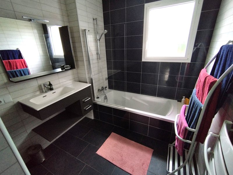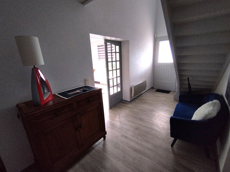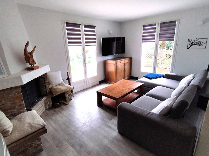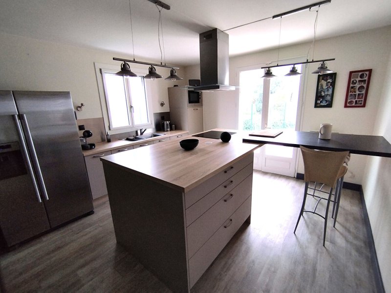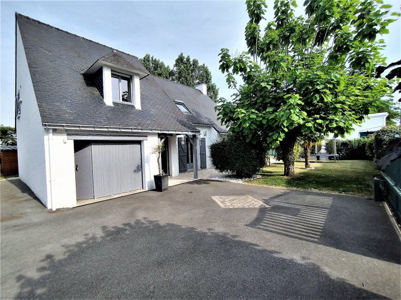 Bourg de Besné. Une maison comprenant au rdc une grande entrée qui dessert un salon séjour, une cuisine aménagée et équipée, une chambre, une salle de bains et un wc indépendant. A l'étage un palier desservant trois chambres dont une avec dressing, une salle de jeux, un débarras et une salle d'eau et un wc indépendant. Un garage attenant à la maison, un cabanon et un autre garage complètent le bien sur un terrain entièrement clôturé.
