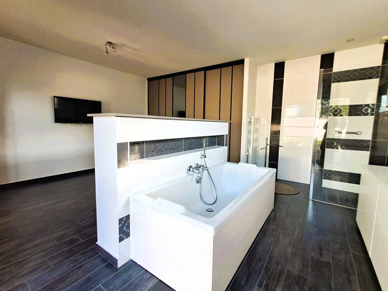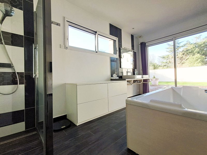 La vie de plain-pied est assurée grâce à une suite parentale confortable, complétée par une buanderie, cellier et un grand garage.