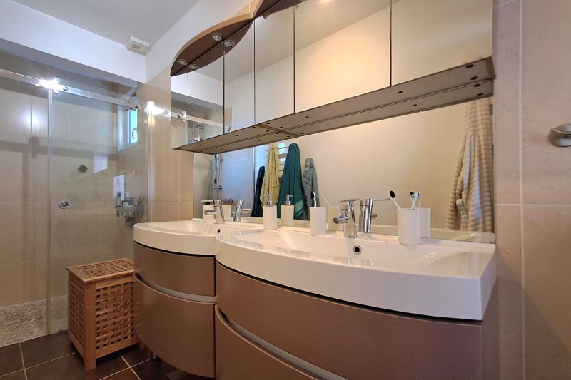 Le rez-de-chaussée propose quatre chambres et une salle d'eau, offrant une configuration idéale pour une vie familiale.