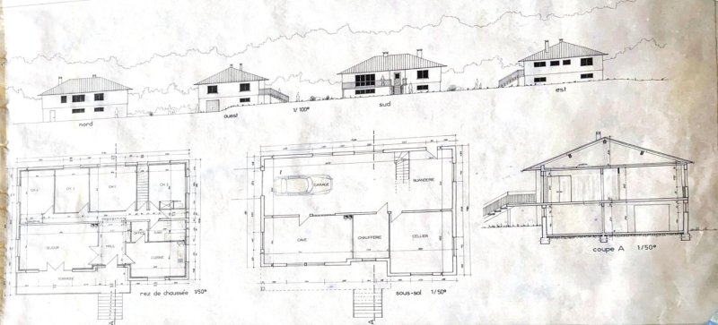 Maison de 124 m² habitables avec un garage de 124 m2 situé en rez-de-jardin sous la partie habitable, permettant d'y stationner des véhicules , de stocker du matériel ou d'y installer un atelier de bricolage ou de création.