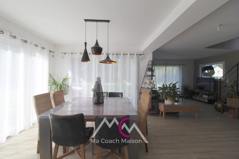 Située au calme d'un petit village, tout en restant proche du bourg, cette maison contemporaine d'environ 132 m2, réalisée par un maître d'oeuvre, saura vous séduire. Conçue pour offrir une agréable vie de plain-pied, elle se compose d'une entrée avec placard qui s'ouvre sur une vaste pièce de vie lumineuse d'environ 40 m2, bénéficiant d'une triple orientation. La cuisine, aménagée et équipée, d'environ 14 m2, est ouverte et communique avec un cellier attenant. L'espace parental, indépendant, comprend une chambre avec dressing, une salle d'eau et un WC. À l'étage, un palier distribue trois chambres supplémentaires, une salle de bains et un second WC. À l'extérieur, vous profiterez d'un terrain clos d'environ 1 000 m2, agrémenté d'une terrasse plein sud de 60 m2. Un double garage attenant vient compléter l'ensemble et dispose d'un grenier offrant un espace de stockage conséquent. Côté confort, la maison dispose de menuiseries en aluminium avec volets roulants électriques et d'un chauffage par le sol sur les deux niveaux. Une cuve de récupération d'eau de pluie et l'assainissement individuel est conforme Diagnostics réalisés le 13/12/2023 : DPE : CLASSE ÉNERGIE : A / CLASSE CLIMAT : A Le prix indiqué comprend les honoraires à la charge de l'acheteur : 2.90% TTC du prix du bien hors honoraires Prix hors honoraires : 345 000 EUR Prix honoraires inclus : 355 000EUR MCM Ma Coach Maison, l'Humain au coeur de votre projet immobilier !Vous souhaitez acheter ou vendre votre bien immobilier en bénéficiant d'une prestation de qualité à honoraires maîtrisés ? Votre agence MCM Ma Coach Maison vous accompagne dans votre projet et vous propose une double expertise : Agent immobilier et Valorisation Immobilière (Home-Staging). Notre équipe vous accompagne de la Presqu'île Guérandaise au Nord-Ouest Nantais.Rencontrons-nous à l'agence au no3 place de l'église à Ste-Anne sur Brivet, ou contactez-nous au 02 51 16 23 55 pour échanger sur votre projet et prendre rendez-vous avec votre agent local.A très bientôt !.SARL MCM Ma Coach Maison représentée par Marlène ROCHER, Gérante, titulaire de la Carte Professionnelle NoCPI 4402 2020 000 044 271 CCI Nantes Saint-Nazaire, immatriculée au RCS de Saint-Nazaire 877 555 516 et ayant son siège social 3 place de l'église 44160 Ste Anne sur Brivet.