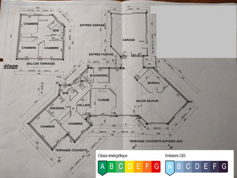 - une cuisine de 20 m² aménagée et équipée d'un cellier de rangement - 2 chambres de 12 et 16 m² avec placards dont une suite parentale avec grand dressing et salle de bain, salle d'eau avec wc indépendant et buanderie.