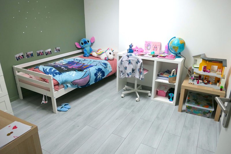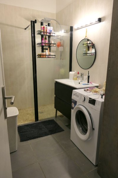 Elle se compose d'une entrée donnant accès à une cuisine aménagée ouverte sur un salon-séjour de 20m2, de deux chambres, d'une salle d'eau et d'un WC séparé.