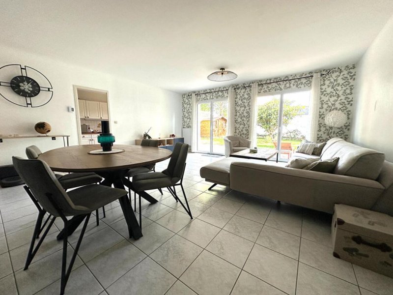 Une pièce de vie spacieuse et baignée de lumière, ouverte sur le jardin,