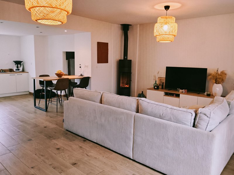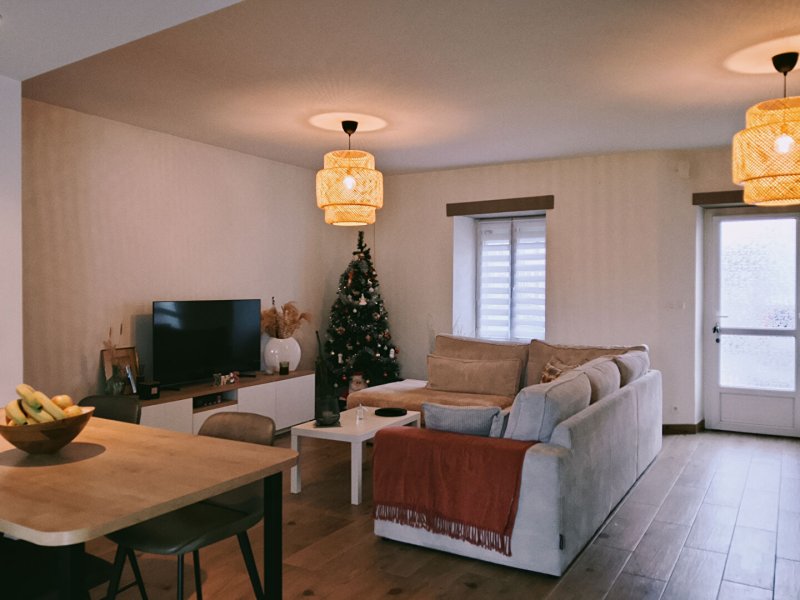 Grande pièce de vie lumineuse de 49 m2 avec cuisine neuve (2024)