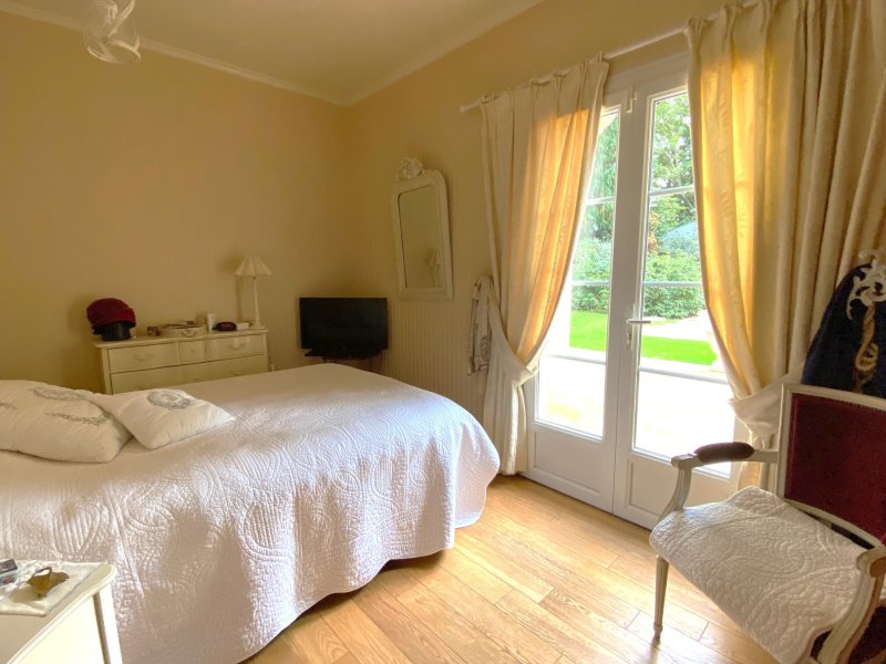 Nichée au coeur d'un parc joliment paysager et arboré de 2800 m2, venez découvrir cette chaleureuse propriété de 242m2 Une réception de 53m2 avec cheminée une cuisine avec espace repas de 24m2, trois chambres spacieuses au rez de chaussée dont une avec dressing, une salle d'eau, une arrière cuisine/buanderie de 21m2, trois chambres à l'étage (2 de plus de 20m2) et une salle de bains. De vastes dépendances, complètent la propriété, Un abri de jardin (32 m2) , un carport (62 m2) atelier (21 m2) CLASSE ENERGIE : D - CLASSE CLIMAT : D. Montant estimé des dépenses annuelles d'énergie pour un usage standard : entre 3890 EUR et 5310 EUR (prix moyens des énergies indexés sur les années 2021, 2022 et 2023 - abonnement compris). Les informations sur les risques auxquels ce bien est exposé sont disponibles sur le site Géorisques : www.georisques.gouv.fr 2.15.1.0 2.15.1.0