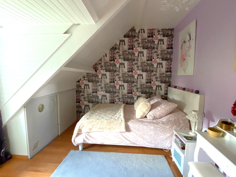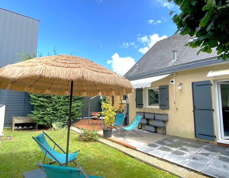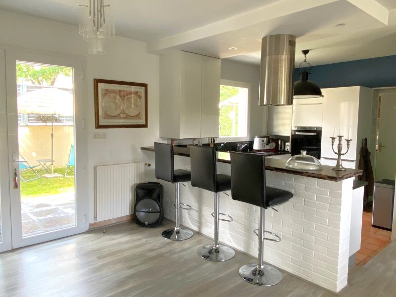 Vous ferez tout à pieds (commerces, écoles et transports) avec cette chaleureuse traditionnelle. elle dispose de volumes fonctionnels et conviviaux. Au rez de chaussée : une pièce de réception de 48m2 avec sa cuisine ouverte et son coin feu, un salon télévision de 32m2 donnant sur le jardin, une suite parentale avec son dressing et sa salle d'eau privative, une grande arrière cuisine fonctionnelle. A l'étage , deux jolies chambres mansardées avec rangements, un bureau (ou chambre), une salle de jeux et une salle de bains. Un jardin entièrement clos et sans vis à vis de 597m2 avec garage double. CLASSE ENERGIE : D - CLASSE CLIMAT : C. Montant estimé des dépenses annuelles d'énergie pour un usage standard : entre 1670 EUR et 2320 EUR (prix moyens des énergies indexés au 1er janvier 2021 - abonnement compris). Les informations sur les risques auxquels ce bien est exposé sont disponibles sur le site Géorisques :www.georisques.gouv.fr