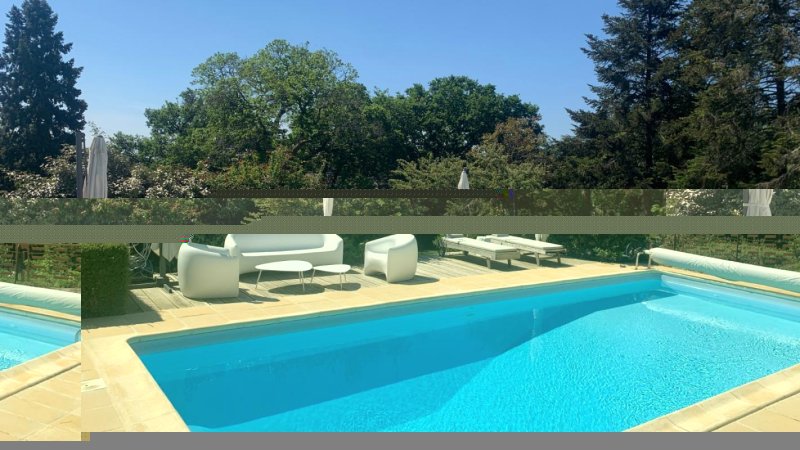 Piscine au sel (9.5x4.5, prof max 2.20m) sans vis à vis et vestiaire douche et toilettes en dessous.