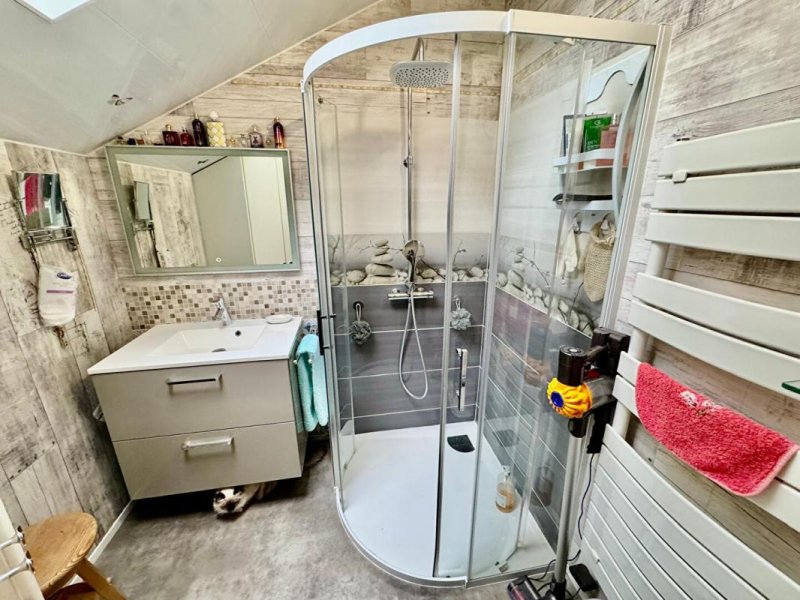 A l'étage deux chambres avec accès à un balcon, une salle de douche, un WC visiteur. Un bureau avec une chambre en mezzanine, le tout avec accès aux combles pour rangements.