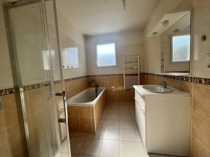 L’espace nuit se compose de trois chambres, dont deux avec placards, ainsi que d’une salle de bains équipée d’une douche et d’une baignoire.
