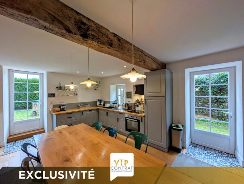 Véritable âme de la maison pour cet espace de vie de plus de 38m², conçu pour le confort et la convivialité , cette pièce réunit avec élégance la cuisine dînatoire moderne et le vaste séjour parfaitement organisé , le charme opère grâce à son plancher bois , sa cheminée en pierre d'origine équipée d'un poêle à granulés récent apportant une touche chaleureuse à l'ensemble.