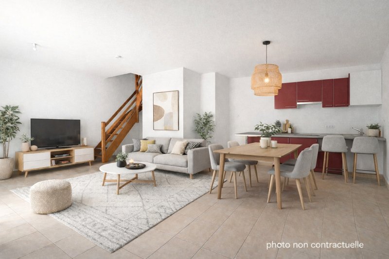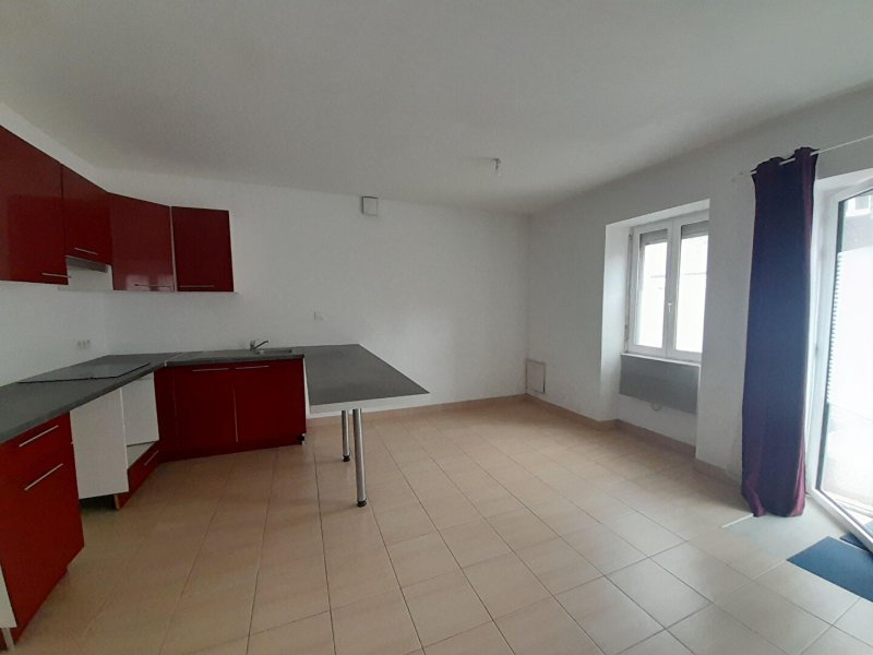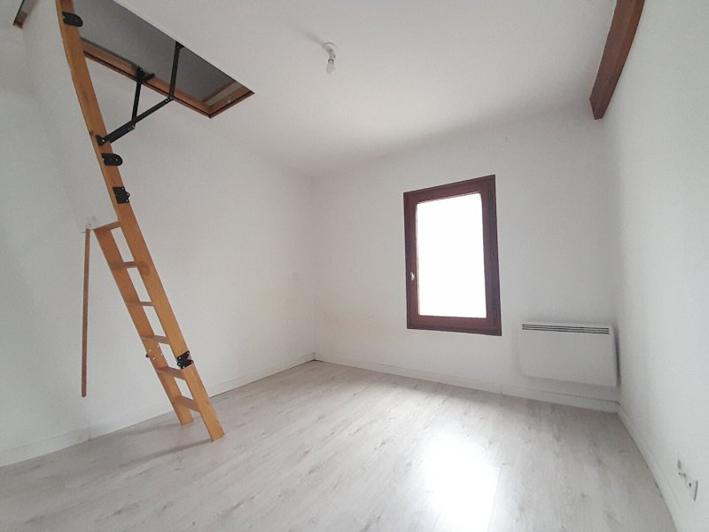 Maison dans le bourg type 3. Elle comprend une entrée, un salon séjour ouvert sur une cuisine aménagée et équipée, wc et cave. A l'étage, un dégagement desservant deux chambres, une salle de d'eau avec wc et un grenier aménagé servant de 3ème chambre.