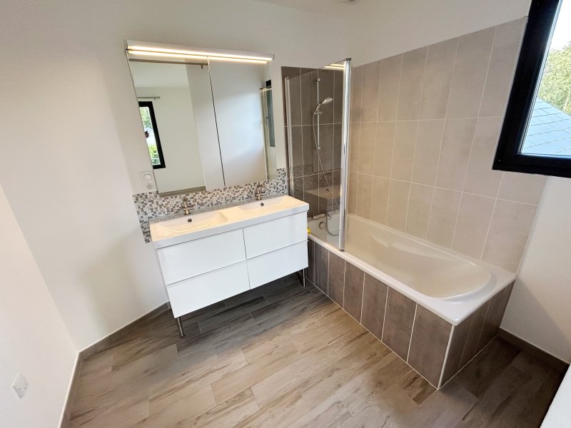 TREILLIERES secteur Ragon et proche périphérique Nantais, maison récente et confortable en parfait état de 115 m² composée d'une entrée avec placard, un lumineux salon- séjour donnat sur une terrasse et sur un patio puis une cuisine ouverte aménagée et équipée, une buanderie, un wc. L'espace nuit à l'étage offre un dégagement, une salle d'eau, trois chambres dont une avec salle de bains privative. Vous disposerez également d'un garage carrelé de 30 m² avec la possibilité de céer une suite parentale (chambre et salle d'eau, les arrivées d'eau et évacuation sont en attente). Un jardin d'environ 335 m² clos avec portail. Merci de contacter l'agence FOURNY de TREILLIERES au 06 62 38 12 85 ou 02 40 94 59 54. Les informations sur les risques auxquels ce bien est exposé sont disponibles sur le site Géorisques: www.georisques.gouv.fr - FN_1759327638