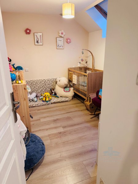A l'étagé : un palier - bureau dessert trois chambres, une salle de bains et un WC indépendant.