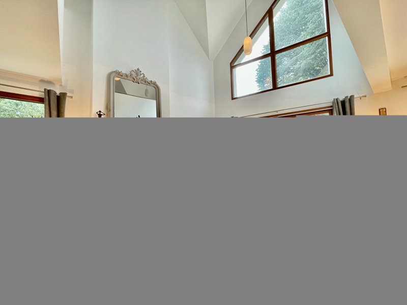 Au rez-de-chaussée, découvrez une belle entrée donnant sur une magnifique pièce vie de près de 60m² avec son plafond cathédrale et cheminée, accompagnée de sa cuisine équipée et aménagée,