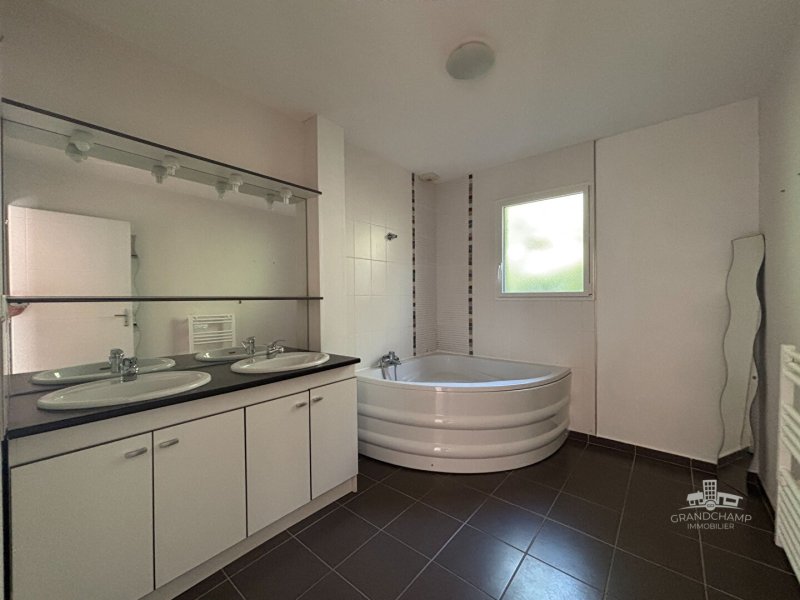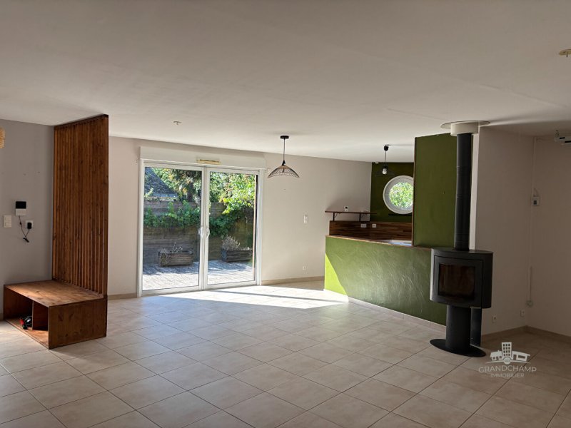 Une hall d'entrée vous conduit sur un beau salon - séjour de plus de 40 m² avec poêle à bois, une cuisine aménagée et équipée de 12 m² complète cet espace avec bien sur une arrière cuisine. Un dégagement dessert trois chambres avec placards, une grande salle de bains et un WC indépendant.