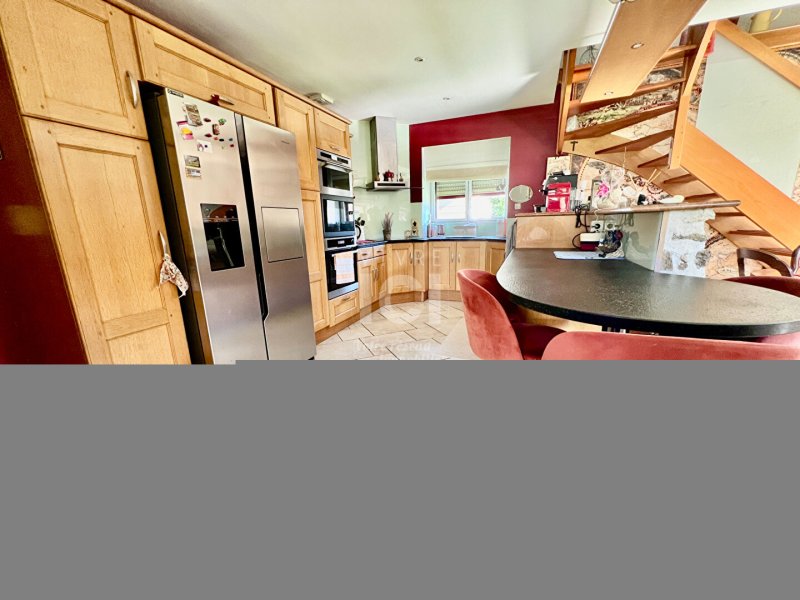 Au rez-de-chaussée, vous serez séduits par un salon-séjour cathédrale baigné de lumière, avec sa belle hauteur sous plafond, ouvert sur une cuisine aménagée et équipée.