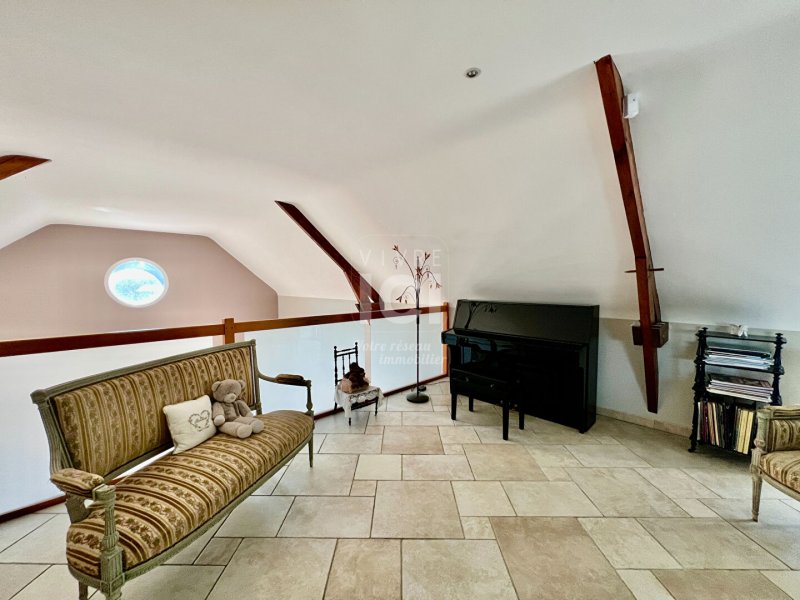 À l'étage : une mezzanine de 24 m² surplombant le séjour, trois belles chambres, un bureau (ou 4ème chambre), une salle de bains et un WC, ainsi que de nombreux rangements.