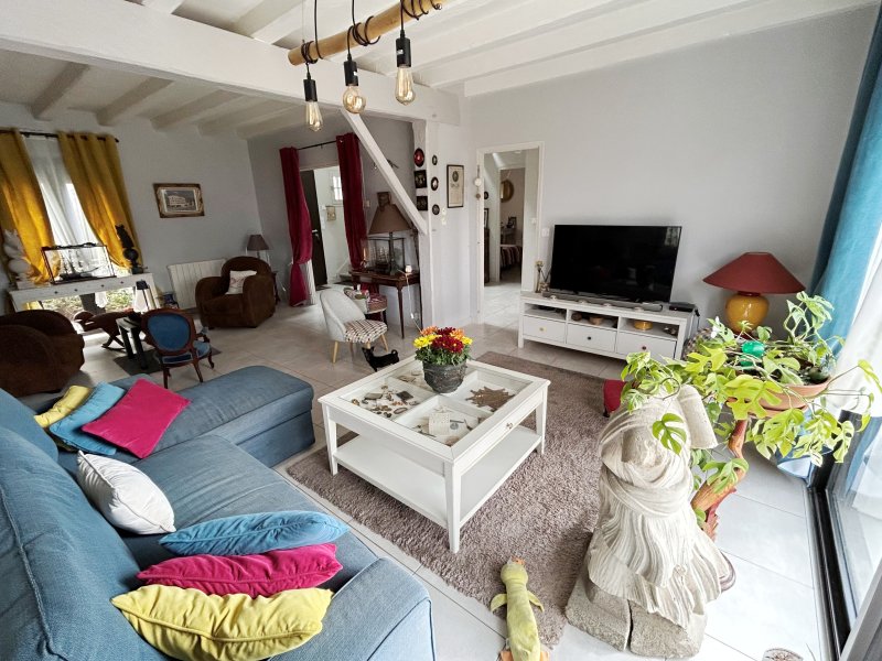 Proche bourg, secteur résidentiel calme, maison en excellent état d'environ 200 m² avec 5 (à 6) chambres et un bureau, 2 garages attenant avec un préau. Elle comprend une vaste entrée cathédrale s'ouvrant sur un lumineux salon séjour avec un poêle à bois, une cuisine équipée donnant sur le jardin et communiquant avec une buanderie. Le rez de chaussée est complété par une suite parentale avec dressing et salle d'eau, ainsi qu'une pièce indépendante de 22 m² (détente, atelier, bureau ou chambre). La mezzanine de l'étage dessert 4 belles chambres et un bureau ainsi qu'une salle de bains avec wc. Jardin clos autour de la maison de 700 m² environ avec une terrasse et du stationnement pour véhicules. Posez vos valises ! Merci de contacter l'agence FOURNY de TREILLIERES au 06 62 38 12 85 ou 02 40 94 59 54. Les informations sur les risques auxquels ce bien est exposé sont disponibles sur le site Géorisques: www.georisques.gouv.fr. - FN_1774930806
