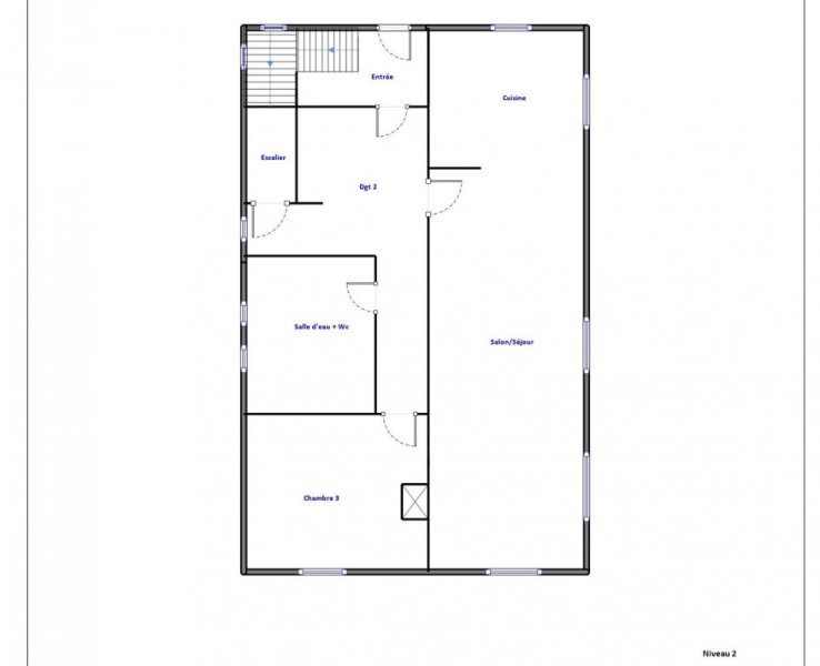 Le deuxième étage est le véritable coeur de la maison. Une entrée vous accueille, menant vers un séjour lumineux avec cuisine ouverte, baigné de lumière naturelle et équipé d'une climatisation réversible pour un confort optimal en toute saison. On s'y imagine déjà partager de bons repas en famille ou se détendre lors des soirées d'été. Une salle de douches avec WC et un bureau (transformable en chambre) complètent cet étage fonctionnel et modulable selon vos besoins.