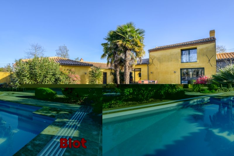 À l'extérieur, vous apprécierez une piscine, un jardin paysagé, ainsi qu'une terrasse exceptionnelle de 150 m², parfaite pour les moments de détente ou les réceptions en plein air.
